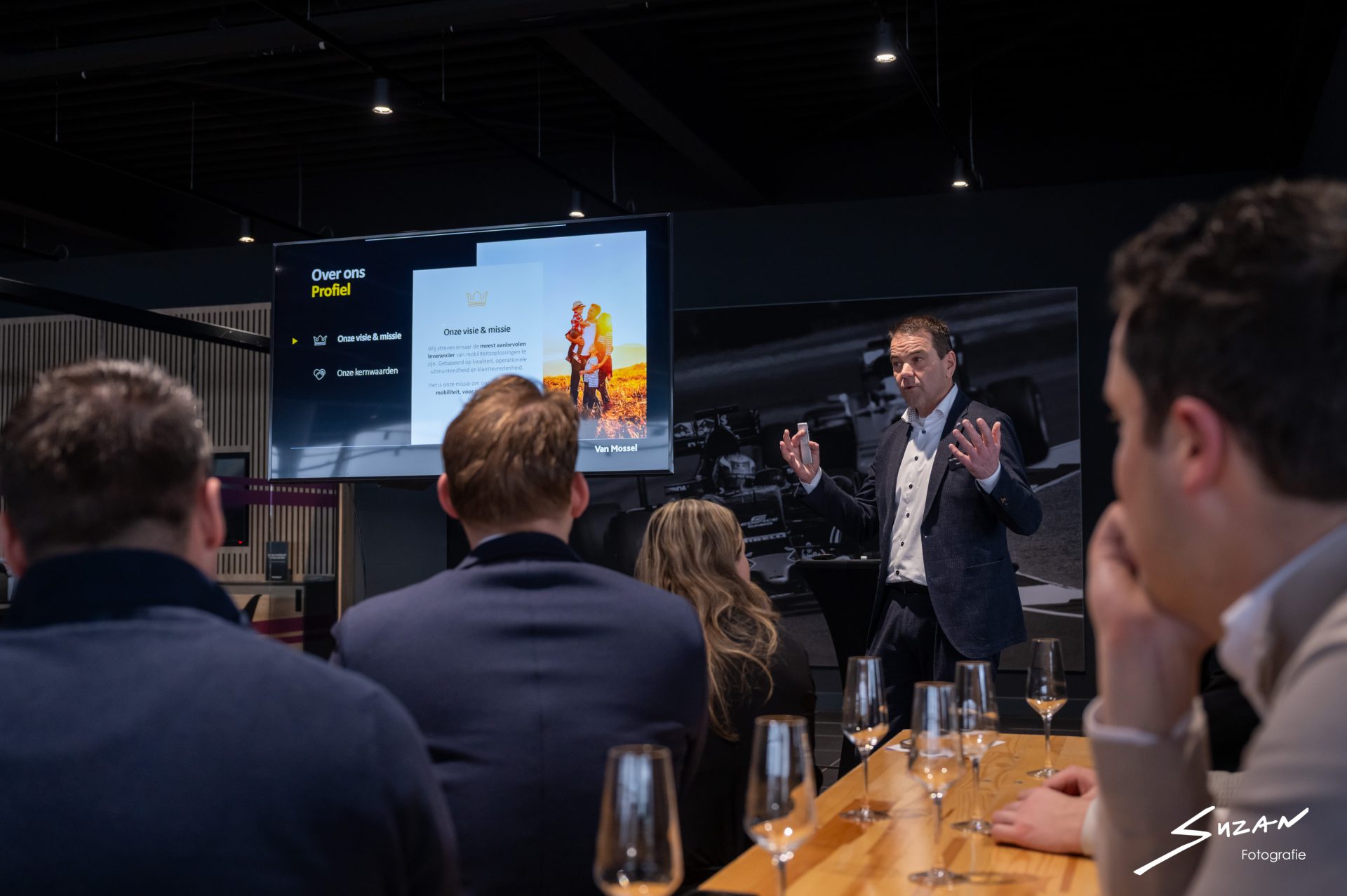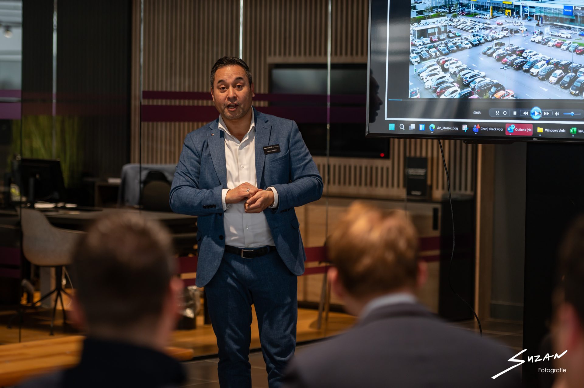 Hierna namen Dignus van Gilst en Bert Flipse van Van Mossel het woord om o.a. de geschiedenis te vertellen van Van Mossel Autolease, één van de grootste automotive bedrijven in Europa. Naast de verschillende soorten autolease bieden ze o.a. ook het onderhoud en schadeherstel aan.